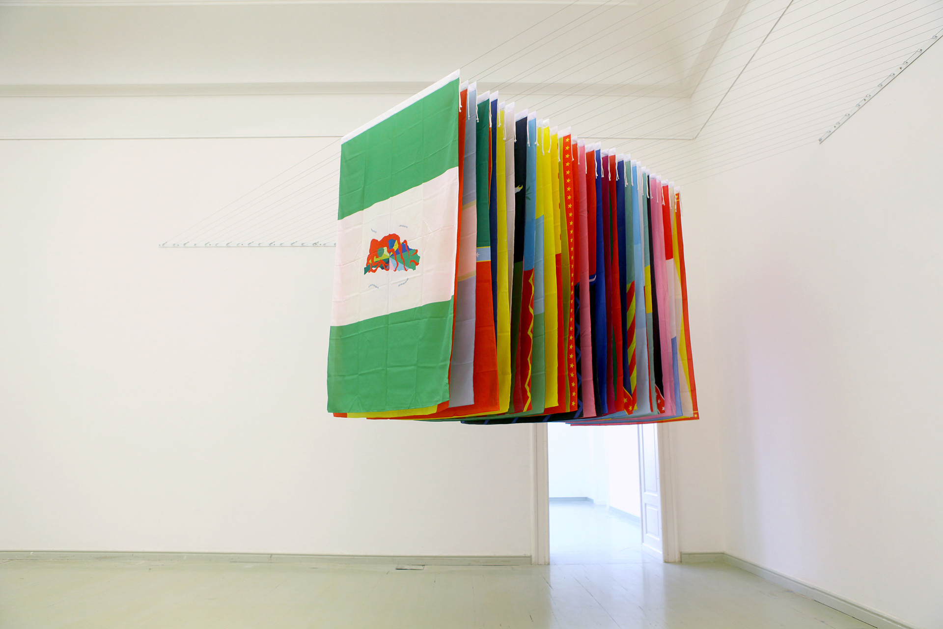 Digital textile printing, Guidebook, 230x150x450 (each flag: 230x150cm), 2009