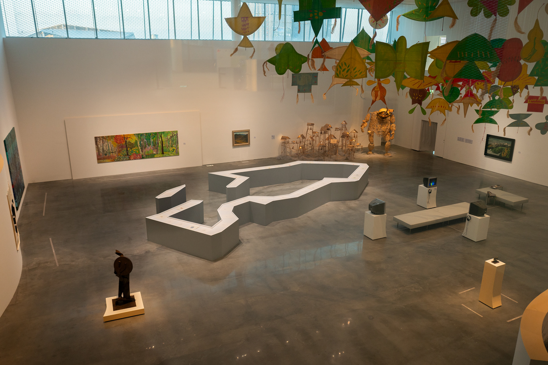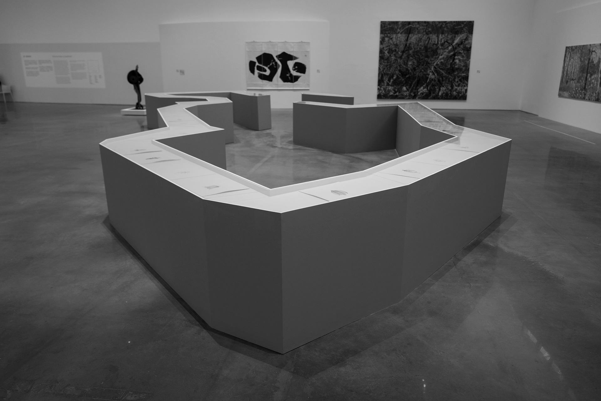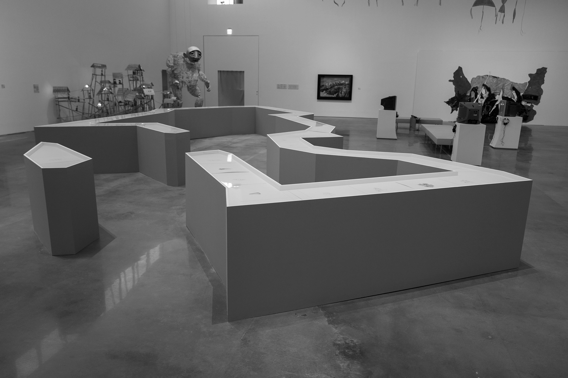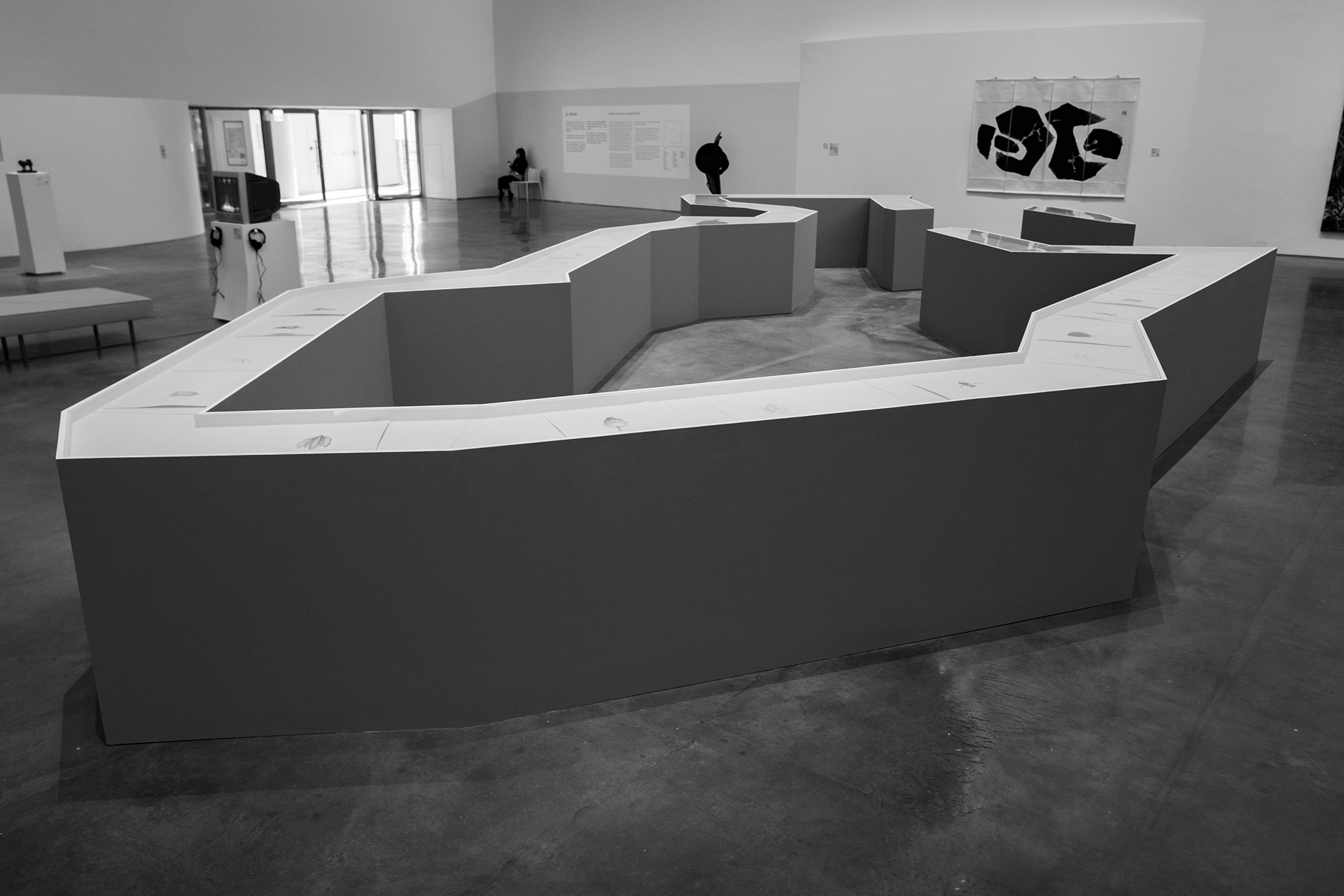This work establishes a boundary within the museum through the use of a shaped plinth, guiding viewers into a site model scaled down to 87.3% of Parcel 391 in Heping District, Taichung City. Positioned within this miniature environment, viewers look outward from the interior of the bunker.