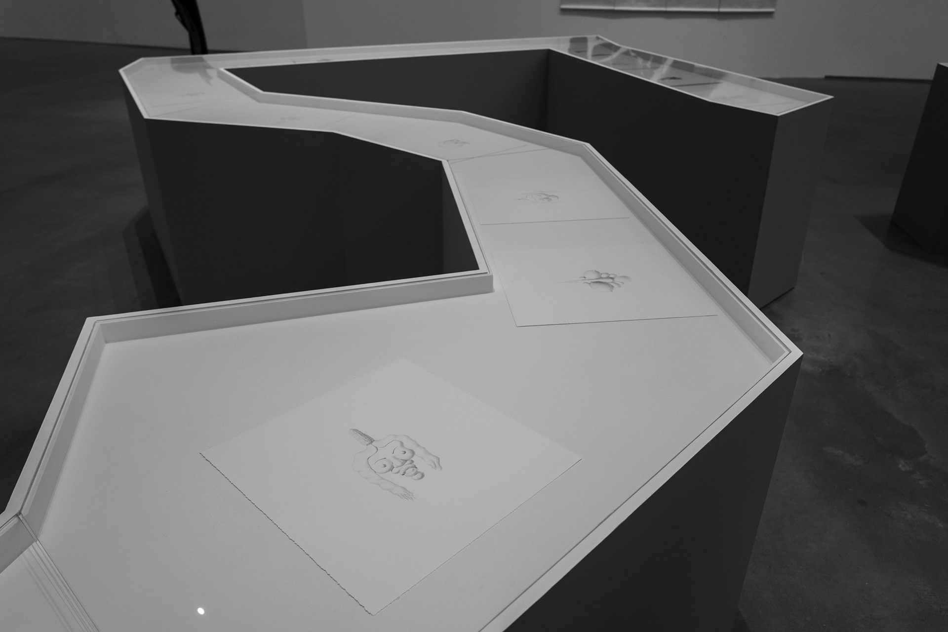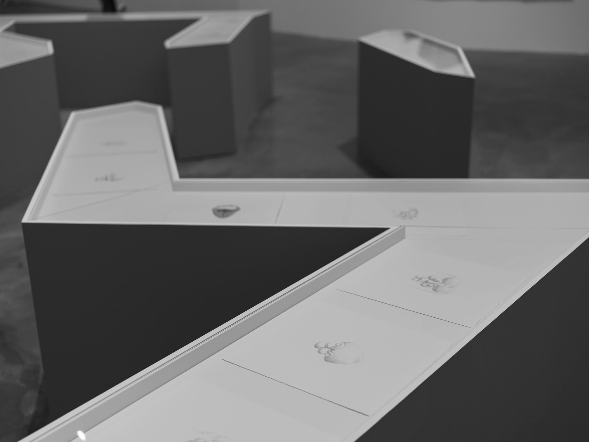 Graphite and watercolor on paper (each ca. 40 x 38 cm), shaped plinths, Dimension Variable